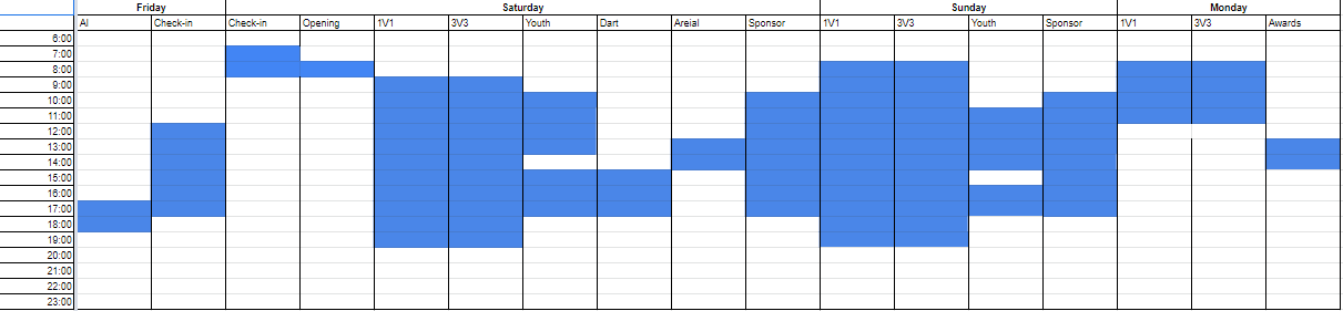 Teams are advised to arrive in College Station by the 23rd. Conferences are tentatively scheduled after finals on the 27th.