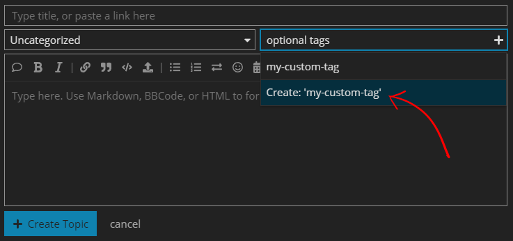 EDIT: I noticed that you had to be a “trusted member” to create tags, so I went ahead and changed it to allow all users.